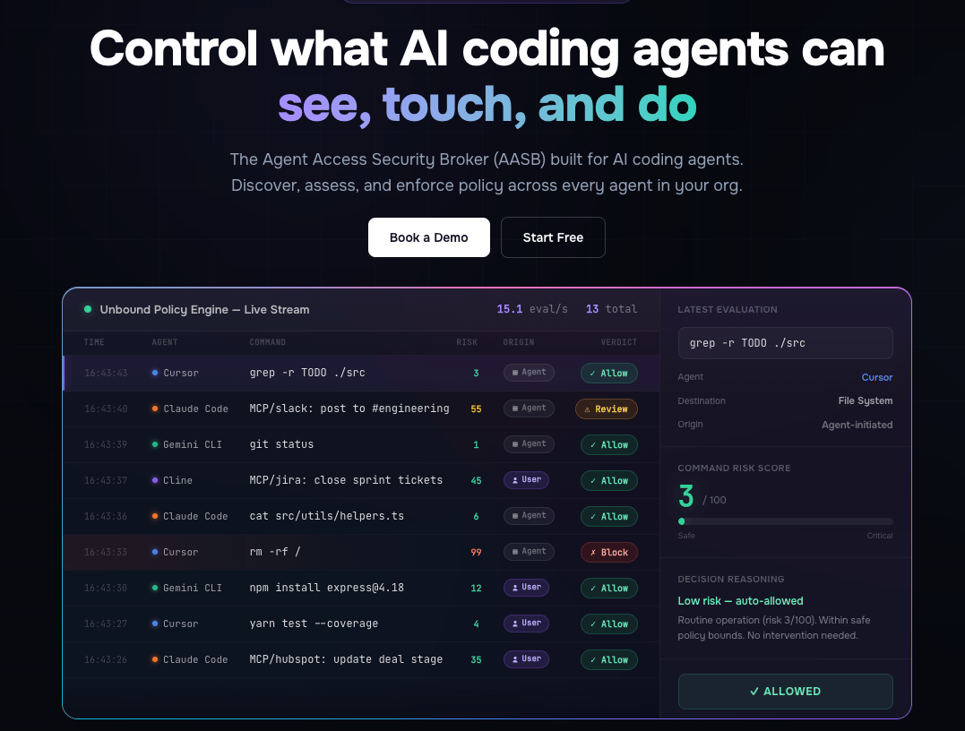 Unbound AI announced Agent Access Security Broker (AASB) as a new category for governing AI coding agents, along with a platform to discover agents in use, assess their risk, and control terminal commands, MCP actions, and sensitive access. The strategic takeaway is that coding agents are starting to look like a new enterprise control surface, big enough to justify a category designed specifically around what software agents can see, execute, and break.